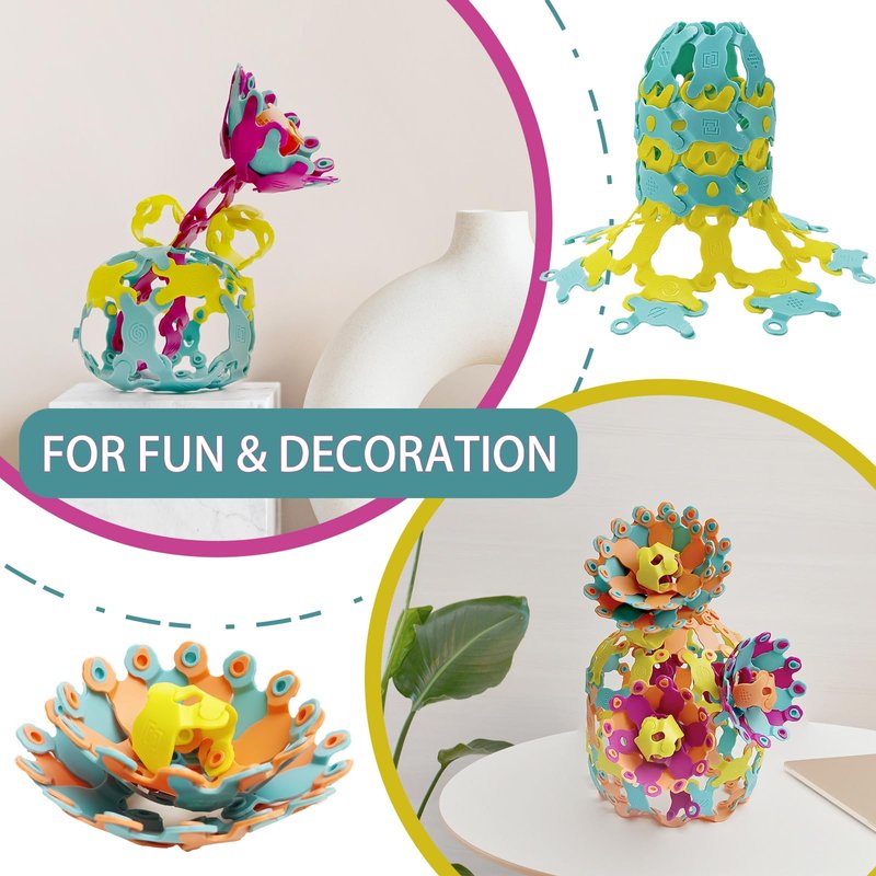 Our flexible building blocks toy includes 138 pcs accessories, being suitable for game based learning concepts such as architecture, fine motor skills, spatial reasoning, design thinking, and creativity.