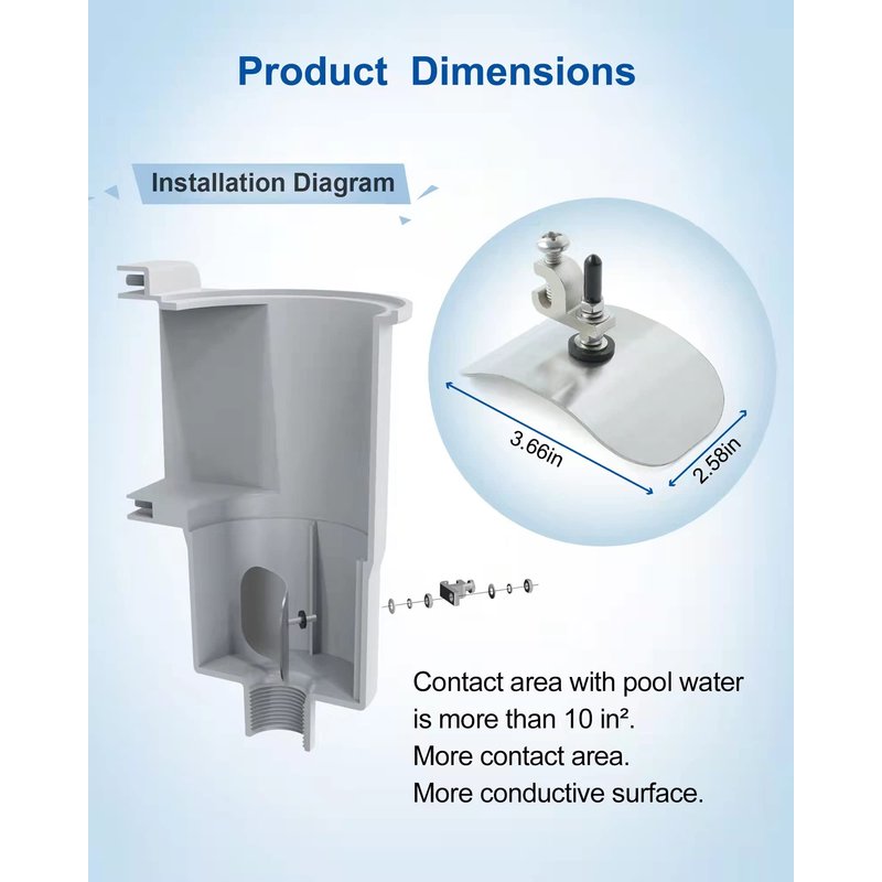 - CONTACT WITH POOL WATER EFFECTIVELY:Swimming pool water bonding kits which mounted at the bottom of the skimmer wall are always connected with the pool water in direct to ensure the pool is effectively bonded at all time. Meet equipotential bonding for above ground pools.
