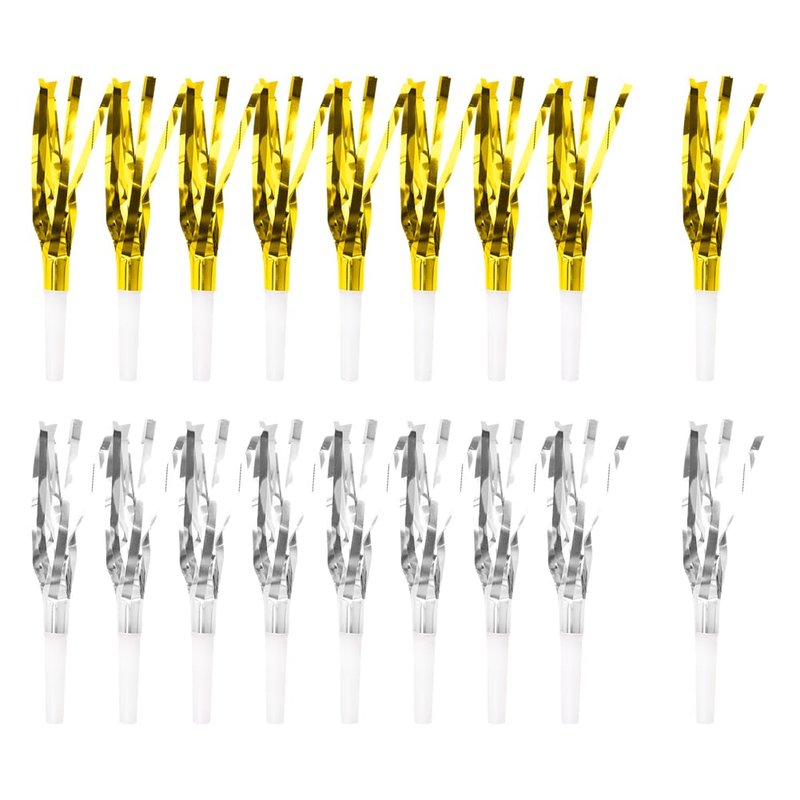 UUYYEO 60 Pcs Metallic Fringed Noise Makers New Year Party Blowouts Happy Birthday Party Whistles Kids Party Noisemakers Sporting Events Accessories Golden and Silver