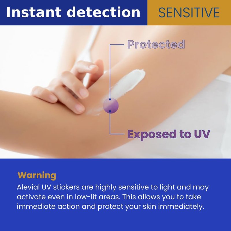 - 【 EASY TO USE 】The sticker dots are incredibly easy to use. Simply apply them to any flat and dry spot on your skin exposed to sunlight, such as your arms, legs, or face. Once exposed to UV radiation, the stickers will change colour as a reminder to reapply sunscreen.