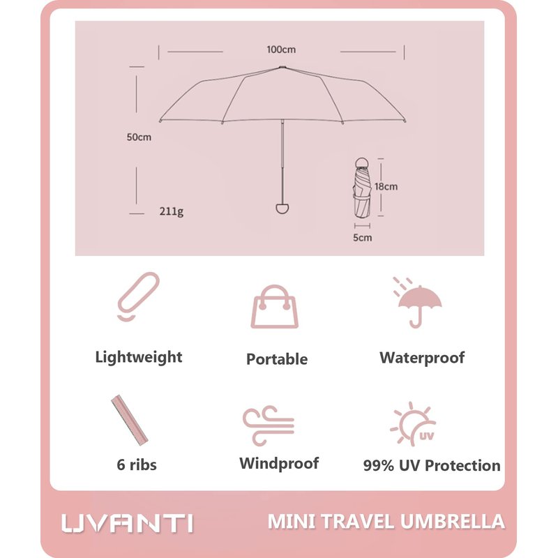 - 【Sun & Rain Umbrella UV Protection】This mini umbrella for travel with case provides UPF 50+ protection which blocks 99% of UV rays from the sun to defend your skin.The layer of UV protection of this compact umbrella will reduce your somatosensory temperature and makes you feel cool in hot summer.