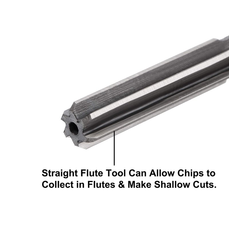 3. Straight flute tools allow chips to collect in the flutes and can make shallow cuts in most applications. Chucking reamers (machine reamers) are used on lathes, drill presses and screw machines.