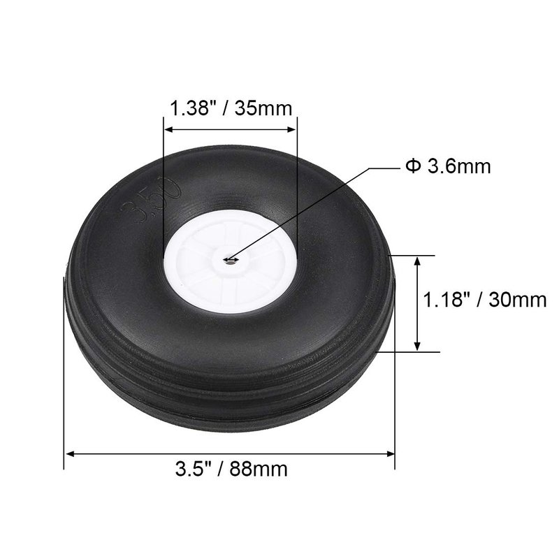 - SIZE - outside diameter: 3.5" / 88mm;axle hole diameter: 3.6mm;tires thickness: 1.18" / 30mm;hub diameter: 1.38" / 35mm.