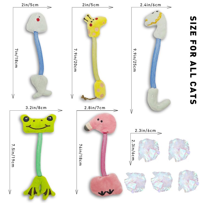 uyiixoxo Cat Toys, Cat Chew Toy for Teeth Cleaning, Soft and Durable Crinkle Sound Catnip Toys, Springs Cat Toy, Interactive Cat Kicker Toys for Indoor Cats (Pack 10)