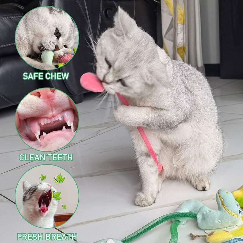 Cat Toys, Cat Chew Toy for Teeth Cleaning, Soft and Durable Crinkle Sound Catnip Toys, Springs Cat Toy, Interactive Cat Kicker Toys for Indoor Cats