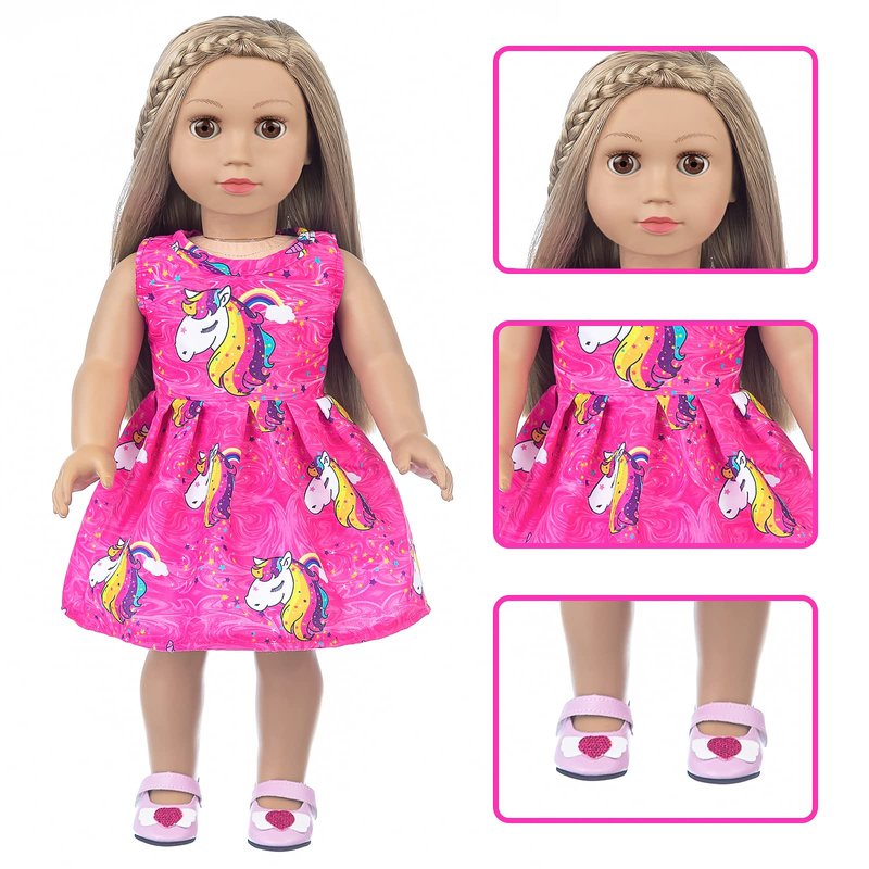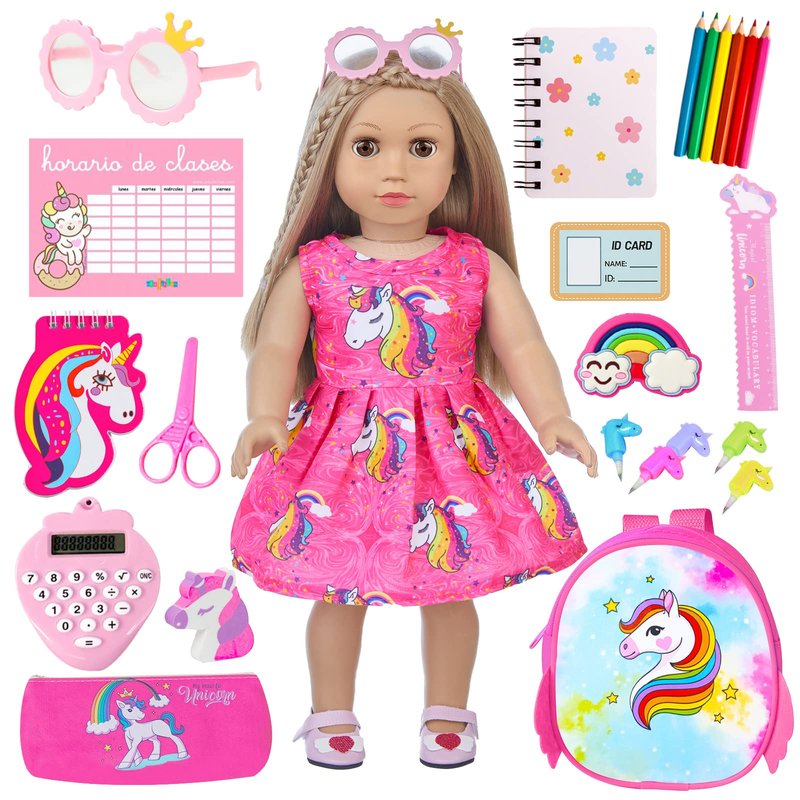 UZIDBTO American 18 Inch Doll Accessories Stationery Set and Clothes Pink Unicorn Series for Kid's 18 Inch Doll