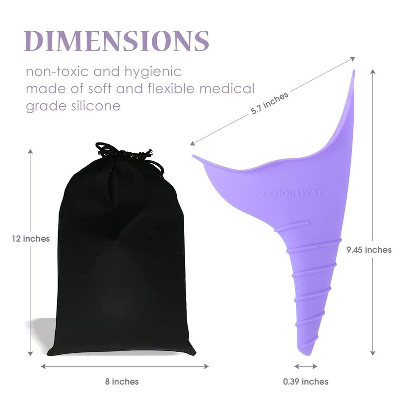 v cool livat Travel Female Urination Device - 2 Pack Reusable Silicone Portable Lady Urinal Pee Funnel Pee Urine Cups Standing Up Camping Outdoor Drawstring Discreet Carry Bag