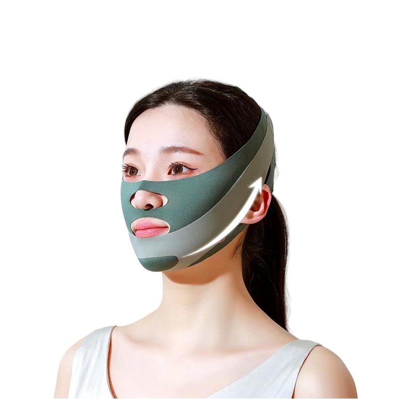 V-Face Mask - Double Chin & Jawline Sculptor, Skin-Soothing Face Lifting Tape - Silky Fabric, Pain-Free, Washable & Reusable (Green)