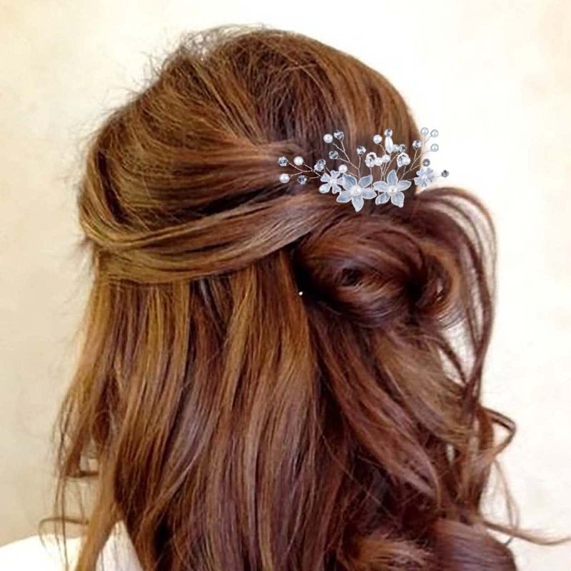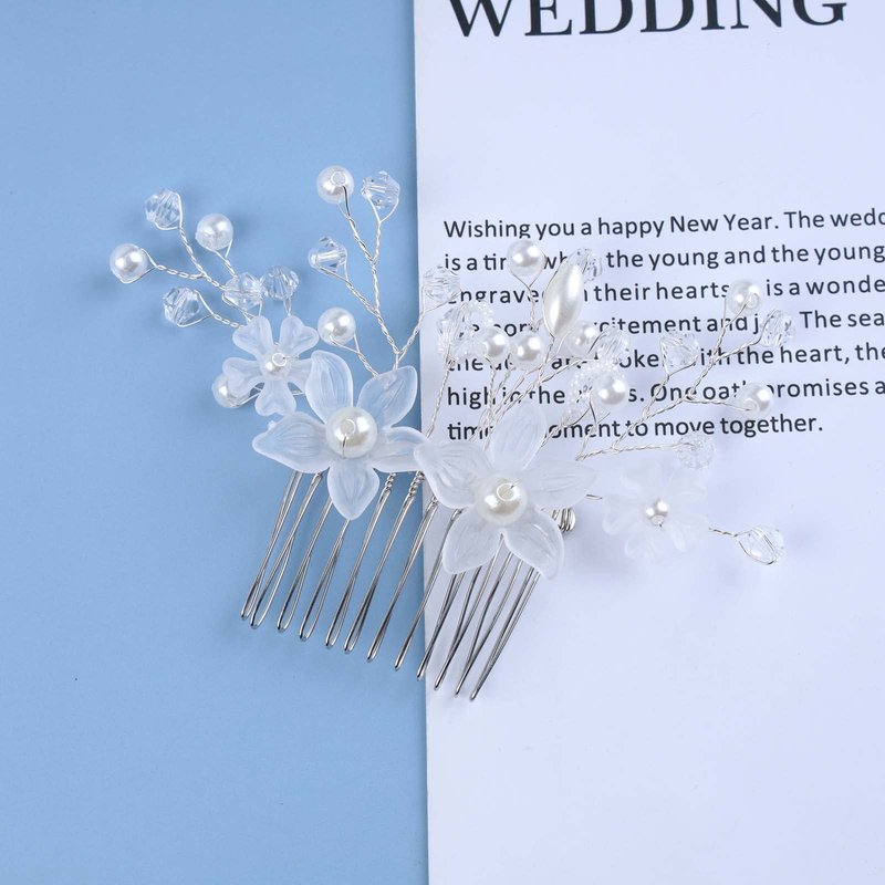 Vacaonio Wedding Pearl Crystal Hair Comb Rhinestone Bridal Hair Pin Hair Piece Silver Flower Hair Combs Arylic Flower Hair Comb Decorative Hair Accessories for Women and Girls Headdress