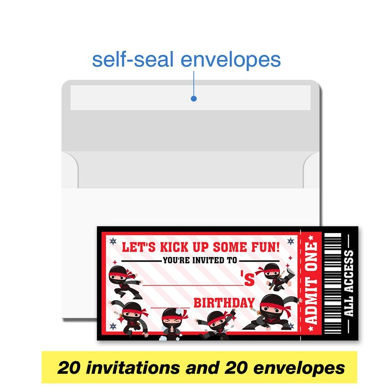 VAHATAN Ninja Birthday Party Invitations 20 Pack Ninja Ticket Invitations with Envelopes Invites Cards for Birthday Party