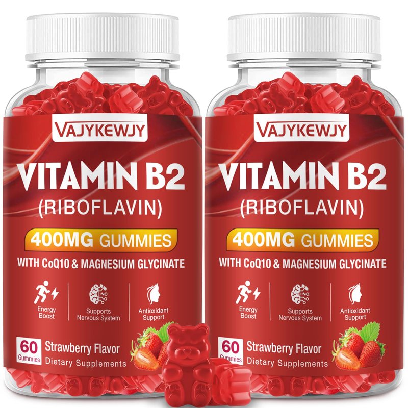 VAJYKEWJY Vitamin B2 Riboflavin 400mg Gummies for Energy & Metabolism Support - Delicious Strawberries Flavor Vegan Gummies - Non-GMO, Gluten Free - 120 Count