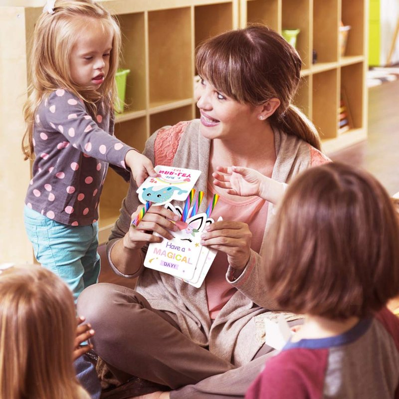 - Package includes 24 cards with rainbow pencils. Let your child give more than a card.