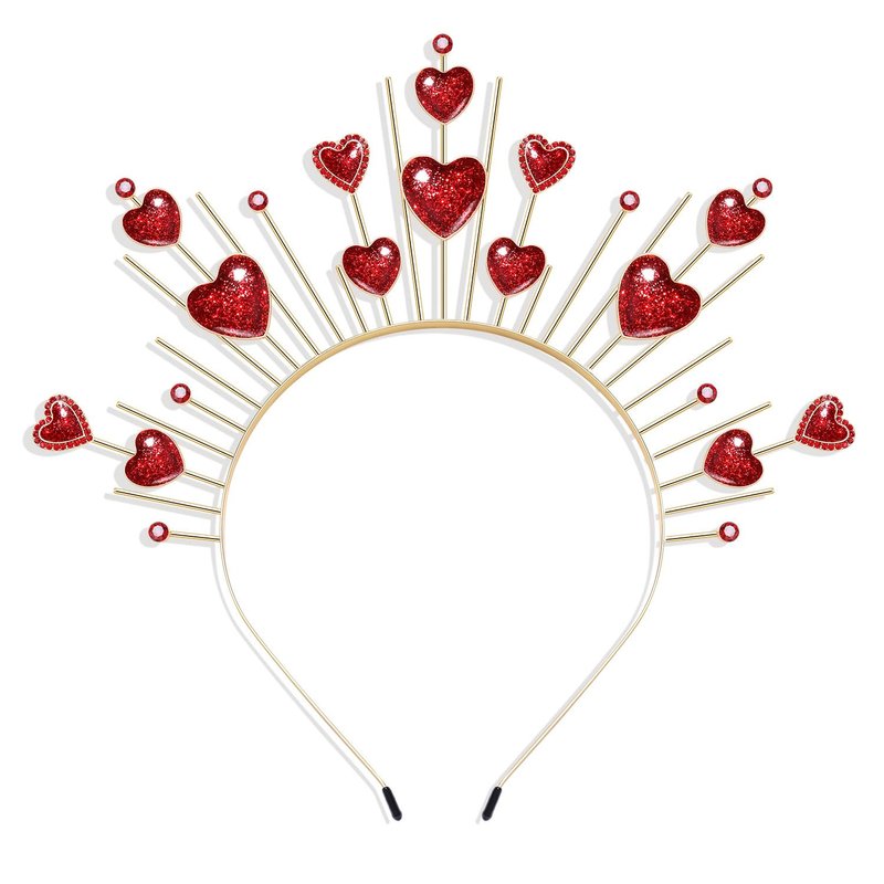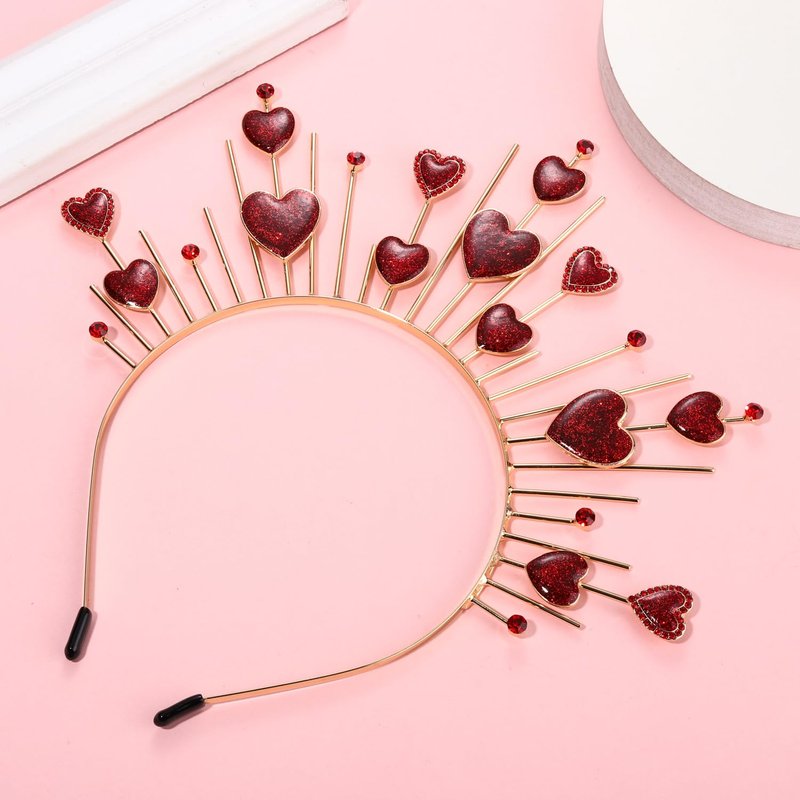 - Valentine's Day Hearts Tiara Headband:Love is in the air! Spread some of that love on Valentine's day night with this fun Cupid love Hearts Headband! This lovely headband will perfectly complete any costume in need of an adorable accessory.You'll be rockiValn' the Valentine's Day party when you show up in this festive headband! It features a tiara-like row of red pink hearts, covered all over in sparkly glitter. Material: metal ,Diameter: about 5 inch,One size fit all.