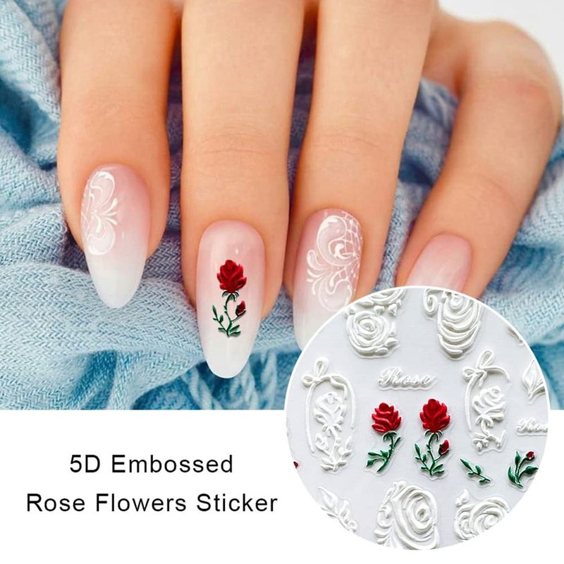 - 5D Embossed Valentine’s Stickers: you will get 3 sheets embossed rose nail decals, unique stereoscopic effects, thicker than normal stickers, which will make your nails more elegant and charming