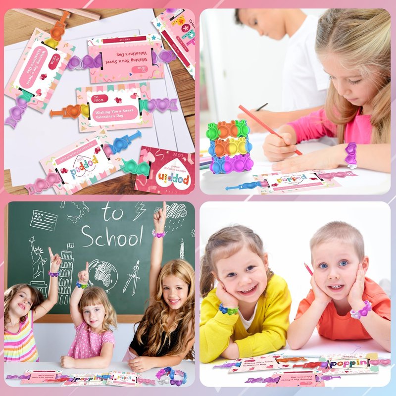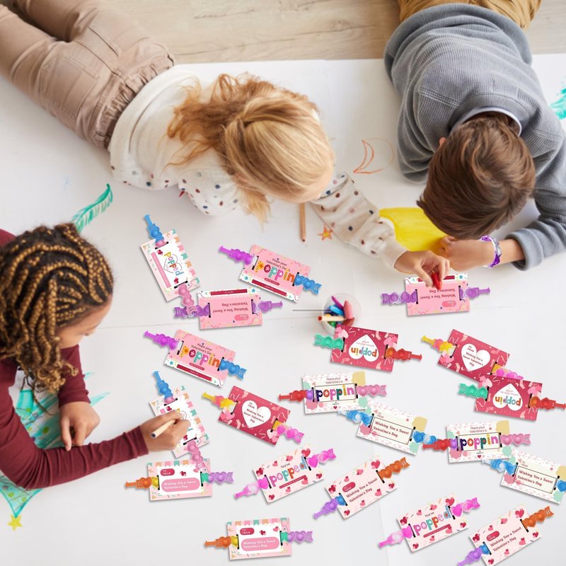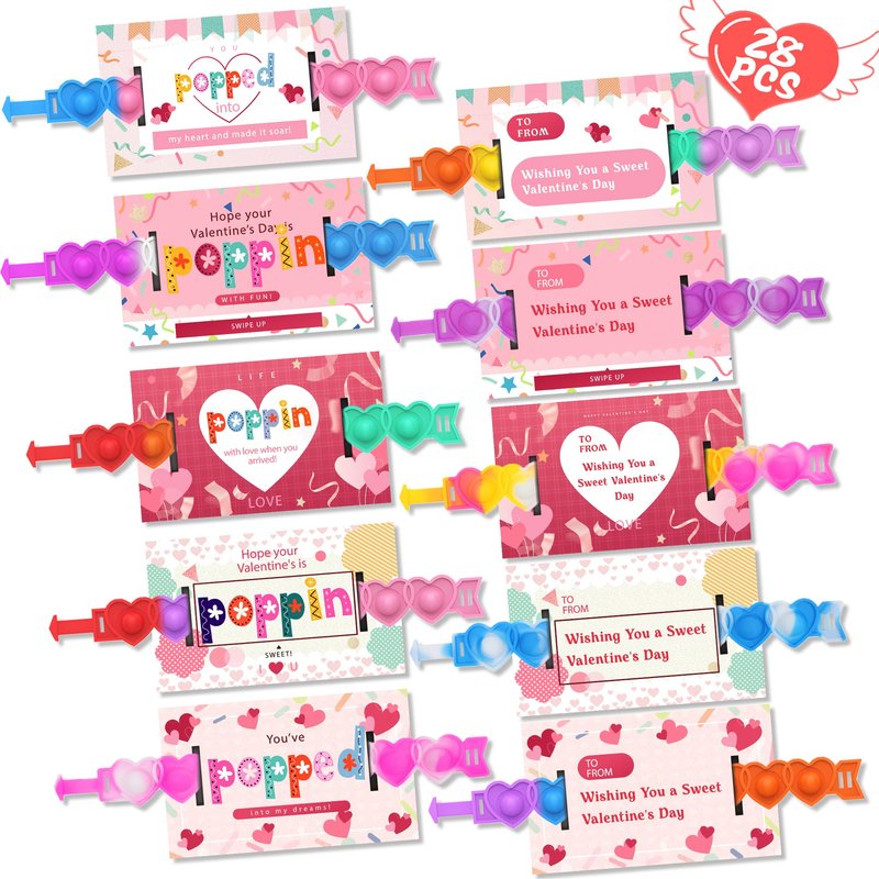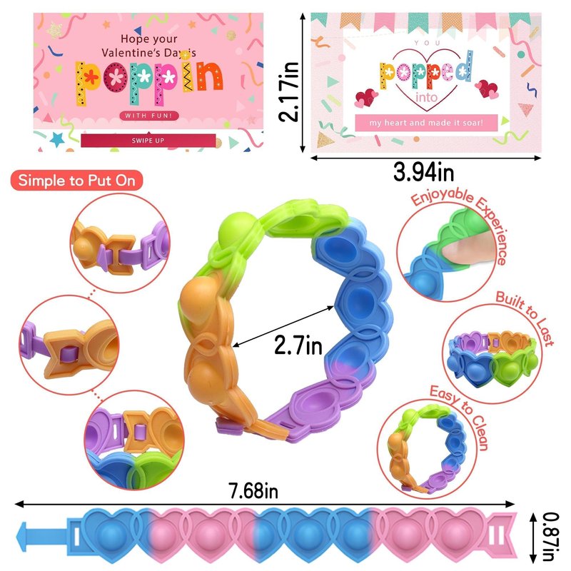 - Pop Bracelet Design: Our heart-shaped pop fidget bracelets are made from soft silicone. Each Valentine's Day card features a special punchline, perfectly matching the colorful bracelets.