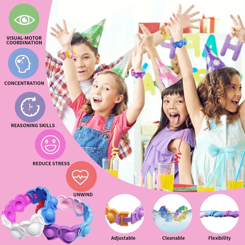 - Stress Relief & Fun: These wearable pop bracelets make a satisfying "pop" sound when pressed, providing a fun sensory experience while helping relieve stress and anxiety, ideal for both kids and adults.