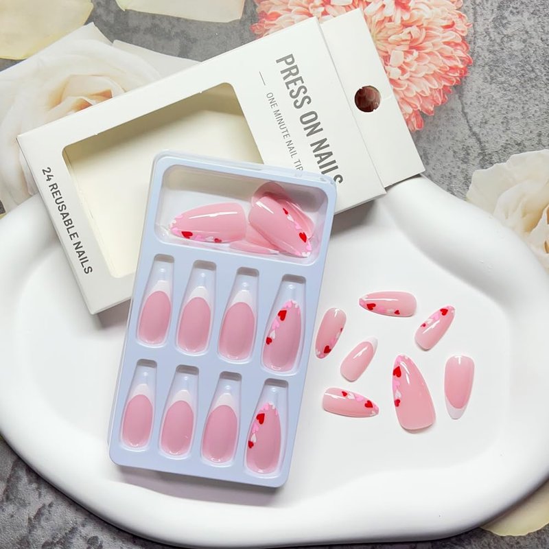 - 💘 [Easy to use] After trimming and cleaning your natural nails, select acrylic nails of appropriate size and apply jelly glue, and then press on the nails for 20 seconds. Now you have beautiful new Valentine's nails!