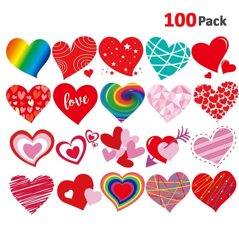 - You will receive 25 sheets totally 100pcs in 20 different designs Heart Temporary Tattoos face kit,features an assortment of hearts themed characters pink red rainbow green yellow fluorescence multicolor apply in to create more interesting experiences and celebrate life! each pattern measures 4*4cm/1.57*1.57inch , one size fit all girls boys kids Women Adult and Kids