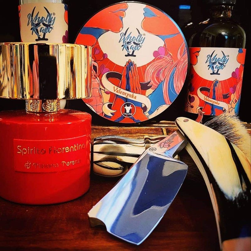 Valentynka Tallow Shaving Soap. Enriched with Donkey Milk, Water Buffalo Milk, Whey Proteins, Omega 3, Omega 6, Hops Extract. Canadian Fir, Leather, Orange, Jasmine, Sugar, Amber, Saffron, Cedarwood