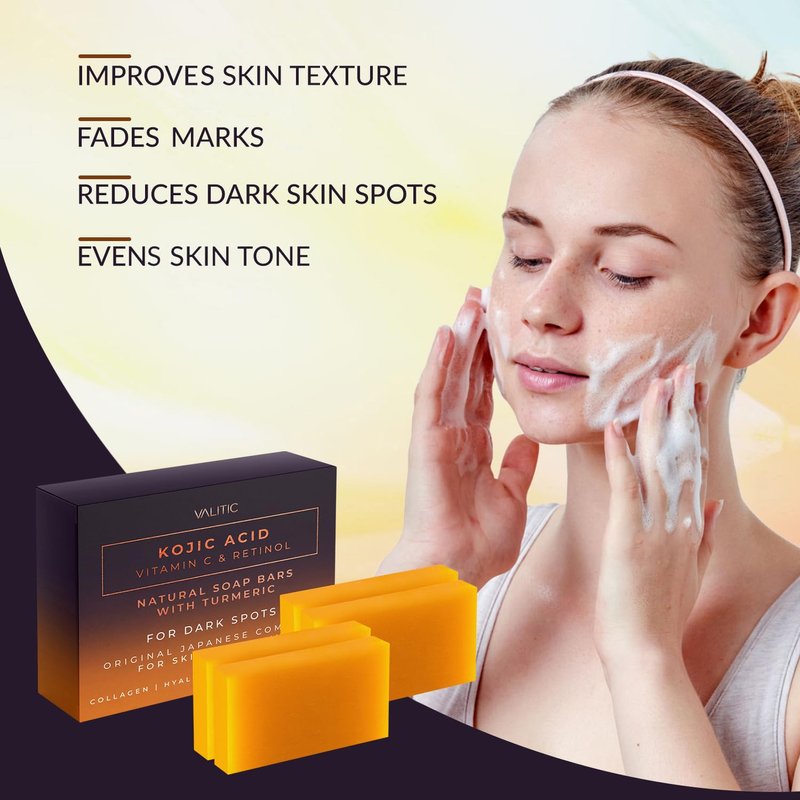 - Kojic Acid, Vitamin C and Retinol: Our soap's main ingredient has a nourishing formula for dark spot correction and is infused with Vitamin C and Retinol that helps restore radiance to aging skin