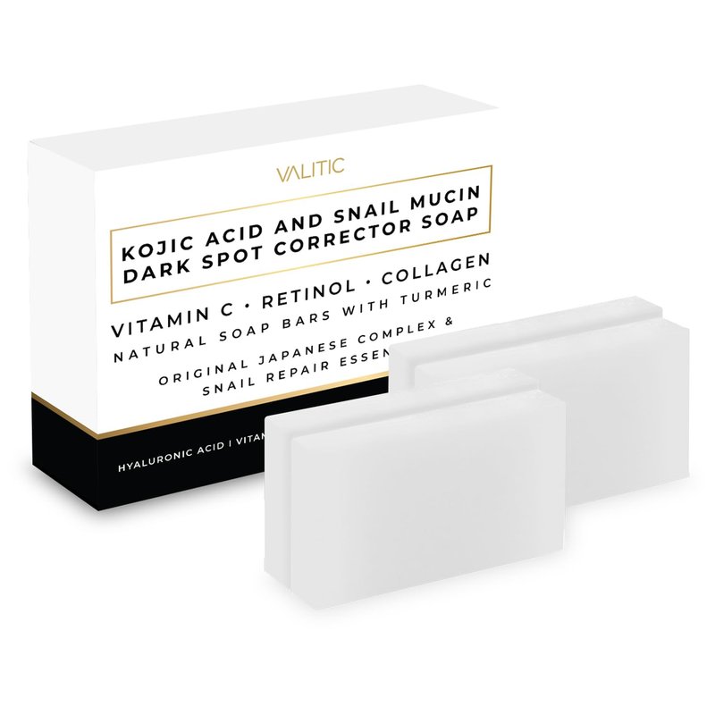VALITIC Snail Mucin Kojic Acid Bar Soap Dark Spot Corrector – with Snail Secretion for Intense Hydration and Moisturization – 4 Pack