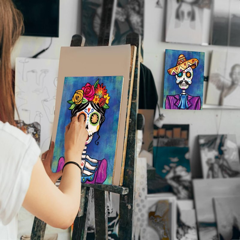 Sip N Paint Kits We encourage you to add more details to create the best artwork by painting the color you think is more appropriate.Dia de los Muertos.Mexican Day of the Dead style.
