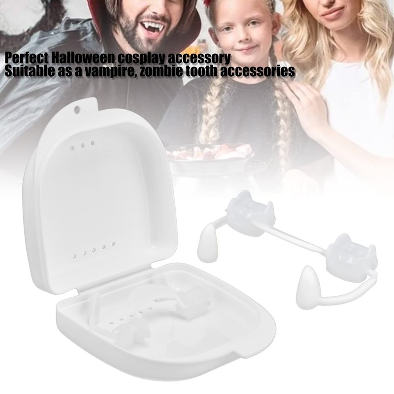 Vampire Fangs Teeth, Soft Silicone Retractable Vampire Teeth Fake Fangs White Horror False Teeth for Cosplay Party Props Halloween Party Fangs Favors and Supplies