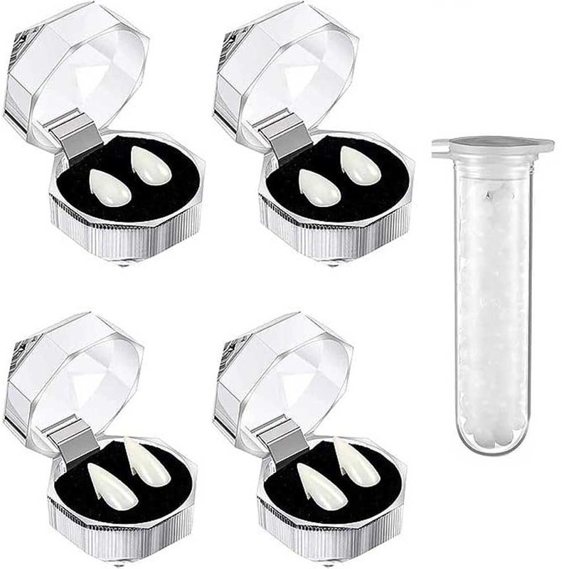 Vampire Teeth Fangs Dentures Halloween Cosplay Props 4 sizes custom made fangs Vampire Fangs false denture with 1 tubular tooth particle Cosplay party prop adhesive Halloween party fangs