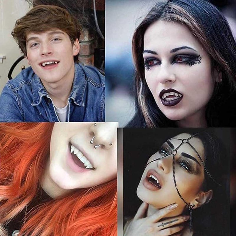 - Material: This Halloween party fangs are made of high quality hygienic resin, injection molded, non-toxic, odorless, hygienic, safe for teeth, and look realistic. Just rinse thoroughly with water before use.