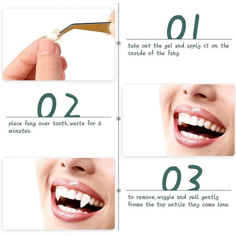 Material:Vampire teeth for children and adults are made of high quality hygienic resin material, non-toxic, gentle on teeth and realistic in appearance.