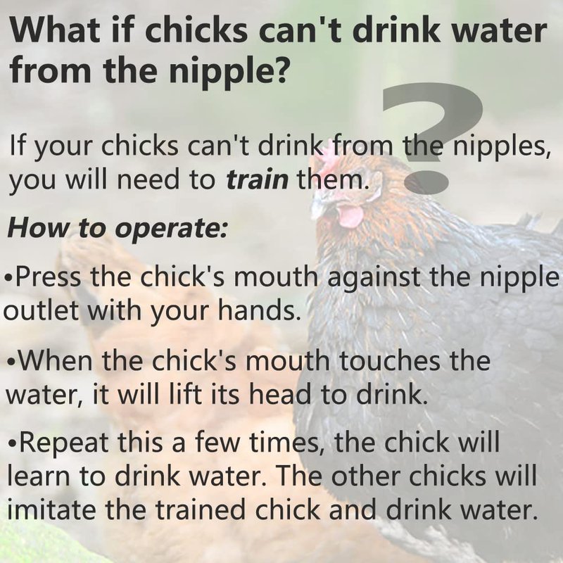 - LEAK-PROOF - The wing nut will securely fasten the chicken water nipple and prevent leaks. Stop the water immediately after drinking. Keep your chicken coop dry.