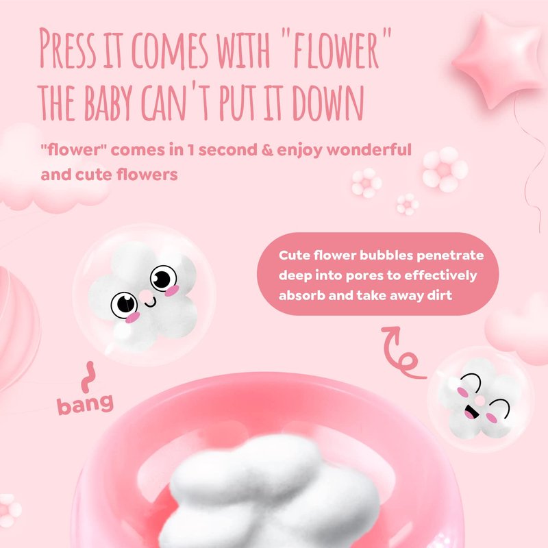 - Flower Shaped Hand Cleaning Foam:Press flower soap dispenser comes with "flower", the baby can't put it down. Each pump dispenses the perfect amount of foaming hand wash in the flower print shape of a furry friend. Advanced foam technology requires no water to lather and rinses cleanly and completely