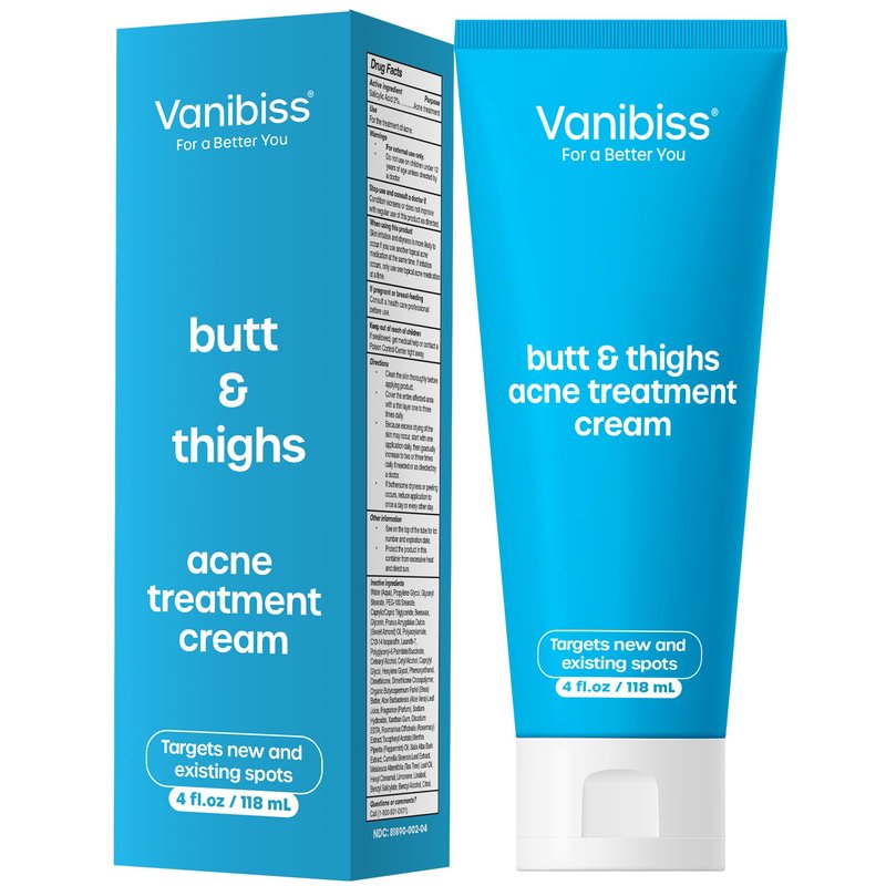 Vanibiss Butt & Thighs Acne Treatment Cream - Reduce Butt Acne, Pimples & Zits - Buttocks Acne Cream - Butt Acne Clearing Lotion - Butt Cream for Bum Acne - 2% Salicylic Acid for Acne Prone Skin (4oz)