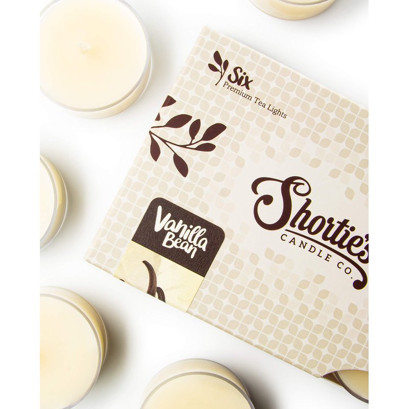 - Our Vanilla Bean Tea lights are hand poured with our classic food grade natural paraffin wax blend for great scent throw.