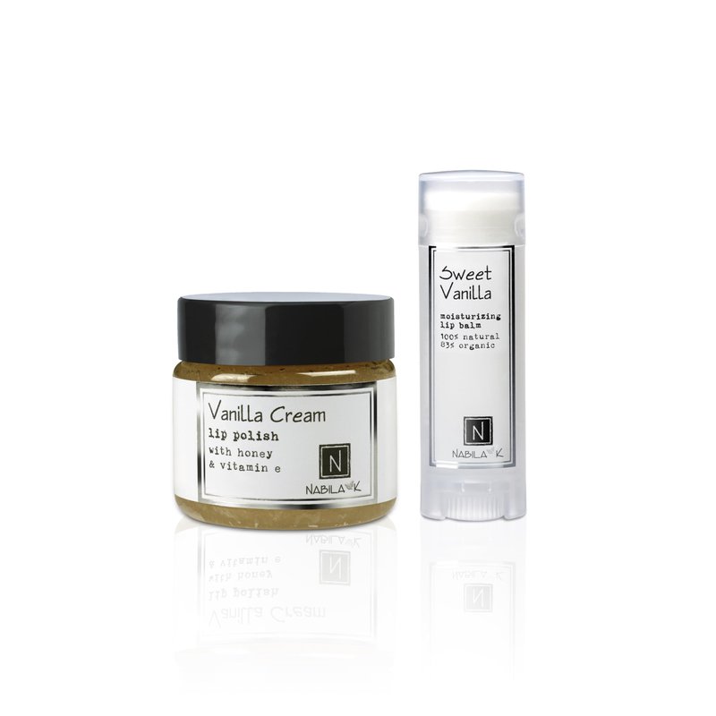 - Soft, Luscious Lips: The Vanilla Kisses Lip Set includes a gentle Vanilla Cream Lip Polish and nourishing Organic Sweet Vanilla Lip Balm, designed to exfoliate and hydrate for smooth, kissable lips.