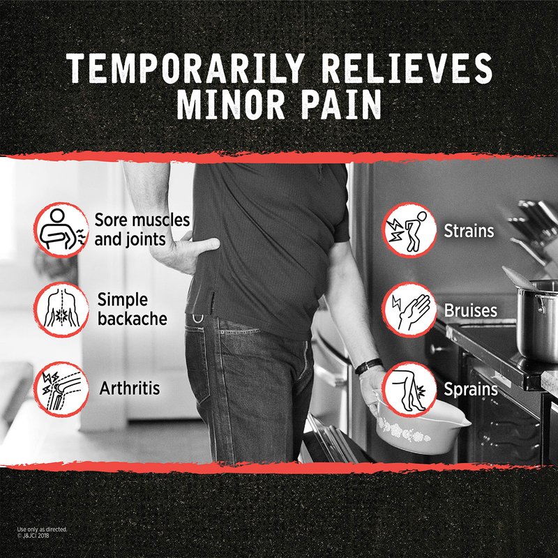 - Ideal for temporary pain relief of minor aches from strains, bruises, sprains, joint backache, arthritis and muscle pain