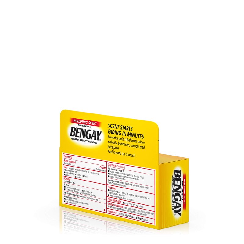 - 4-ounce tube of non-greasy pain relief gel with a vanishing scent formula for muscle and joint pain