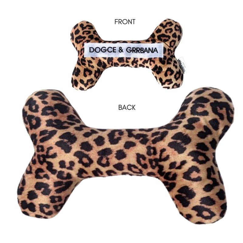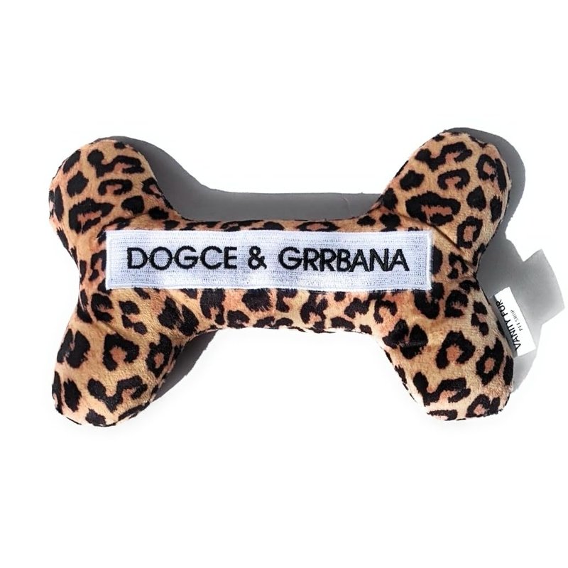 Vanity Fur Pet Shop 2-in-1 Interactive Plush Dog Toy, Stuffed Squeaky Enrichment Chew Toys, Fashion Designer Parody Dog Toy, Squeaker and Rubber Bone Inside | Dogce & Grrbana