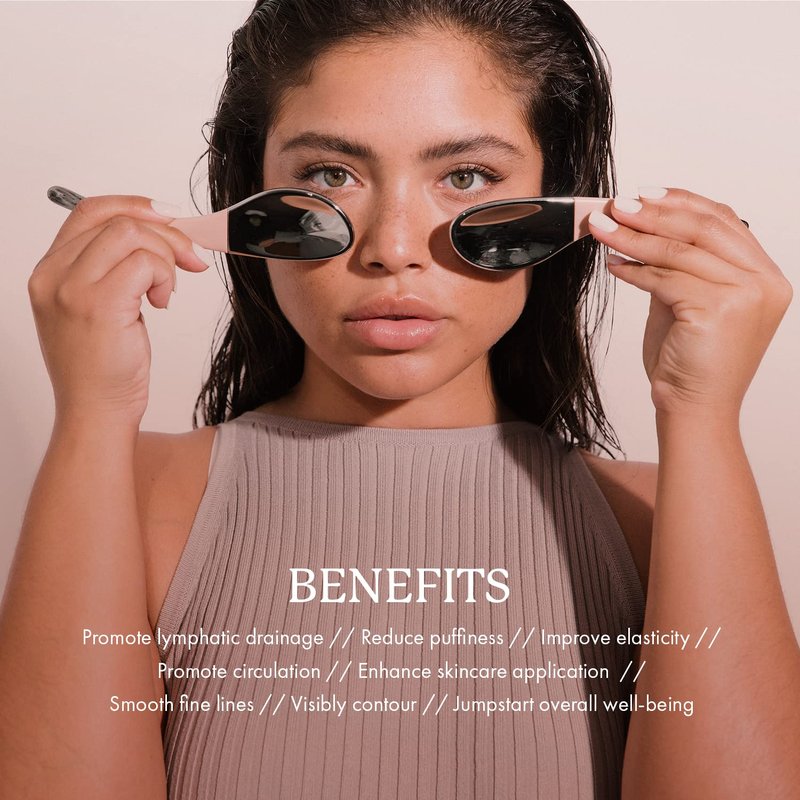 Revive & Refresh: Meet Kera, our 3-in-1 Cryo Facial Globes & Gua Sha toolset. Treat your complexion to the refreshing benefits of cryotherapy on one side and the proven benefits of gua sha on the other – while treating both sides of your face at once! Includes a set of 2 double-sided Kera tools, grip handles, a velvet travel pouch and a user guide.