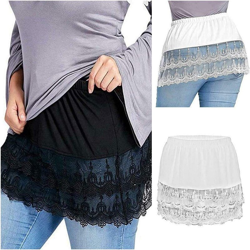 - This Lace Skirt Extenders features in elastic waistband,high waist, with unique lace trim design
