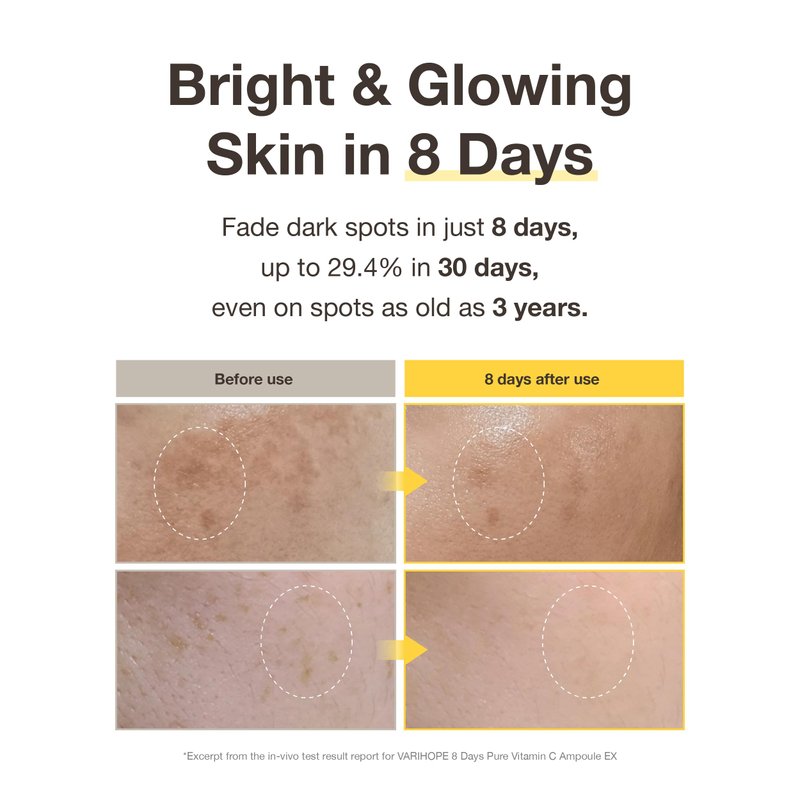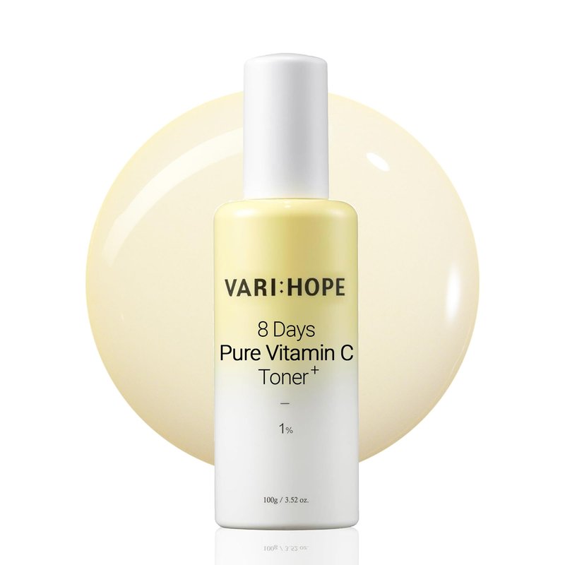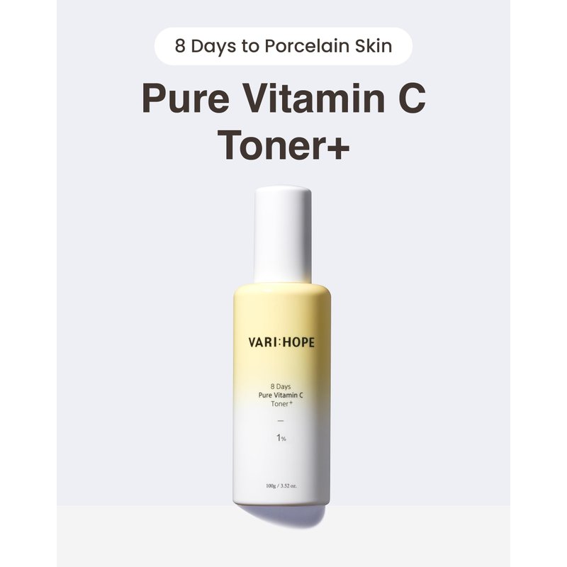 - VARI:HOPE 8 DAYS PURE VITAMIN C TONER PLUS (100g/3.5oz) - Rejuvenate stressed skin and bring radiance to your skin. This multifunctional toner, containing 10,000ppm of stabilized vitamin C, offers skin-illuminating effects, moisturization, and soothing effects, revealing your skin's inner radiance in just 8 days.
