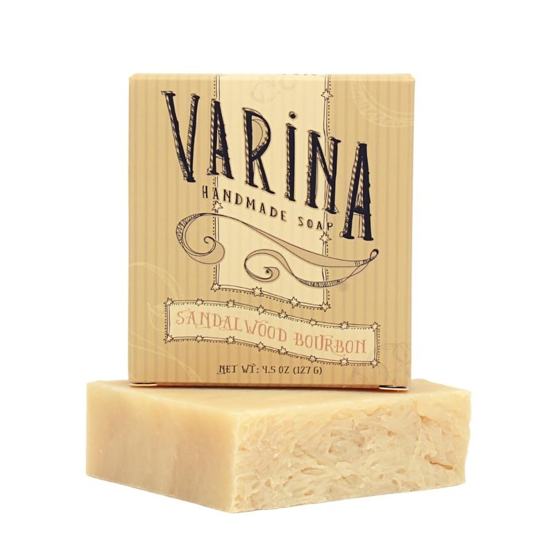 Varina Natural Sandalwood Bourbon Bar Soap - Gentle Cleansing for Sensitive Skin (Sandalwood Bourbon, 3 Pack) Experience the rich and soothing scent of Sandalwood Bourbon in our gentle cleansing bar soap. This soap is perfect for sensitive skin and daily use on both face and body. Made with natural and sustainable ingredients, our soap absorbs excess oil, clarifies the skin, and provides gentle exfoliation. Trust Varina for pure, handmade, and sustainable skincare made in the USA using the cold process method.