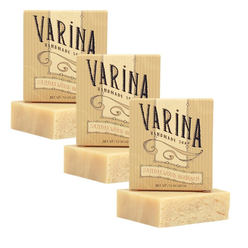 Varina Natural Sandalwood Bourbon Bar Soap - Gentle Cleansing for Sensitive Skin (Sandalwood Bourbon, 3 Pack)