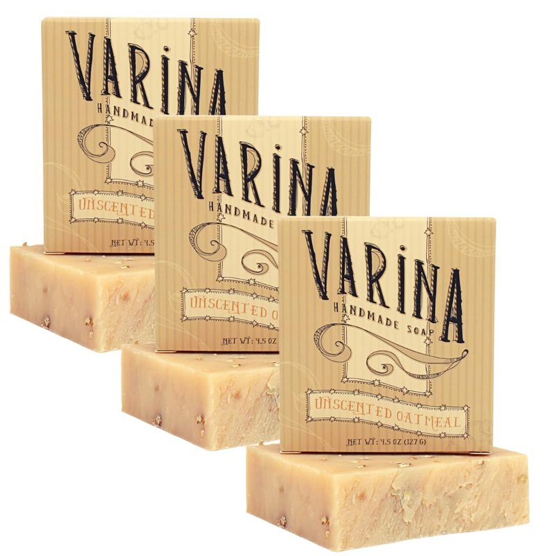 Varina Organic Unscented Oatmeal Bar Soap - Gentle Cleansing for Sensitive Skin, Unscented - 3 Pack - Experience Healthy and Glowing Skin