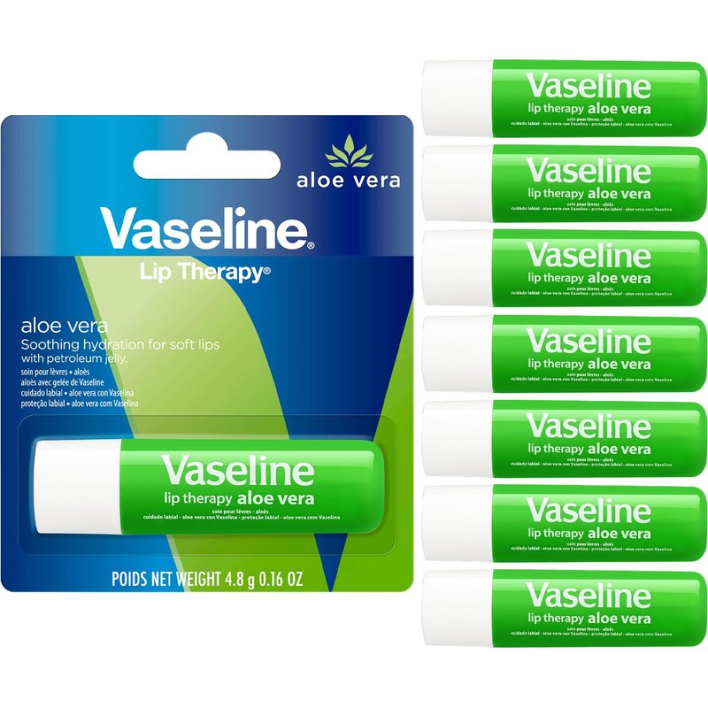 Vaseline Lip Therapy Aloe Fresh - Hydrating Lip Balm Pack, Vaseline Stick, Lip Moisturizer for Dry Lips, 0.16 Oz Each (Pack of 8)