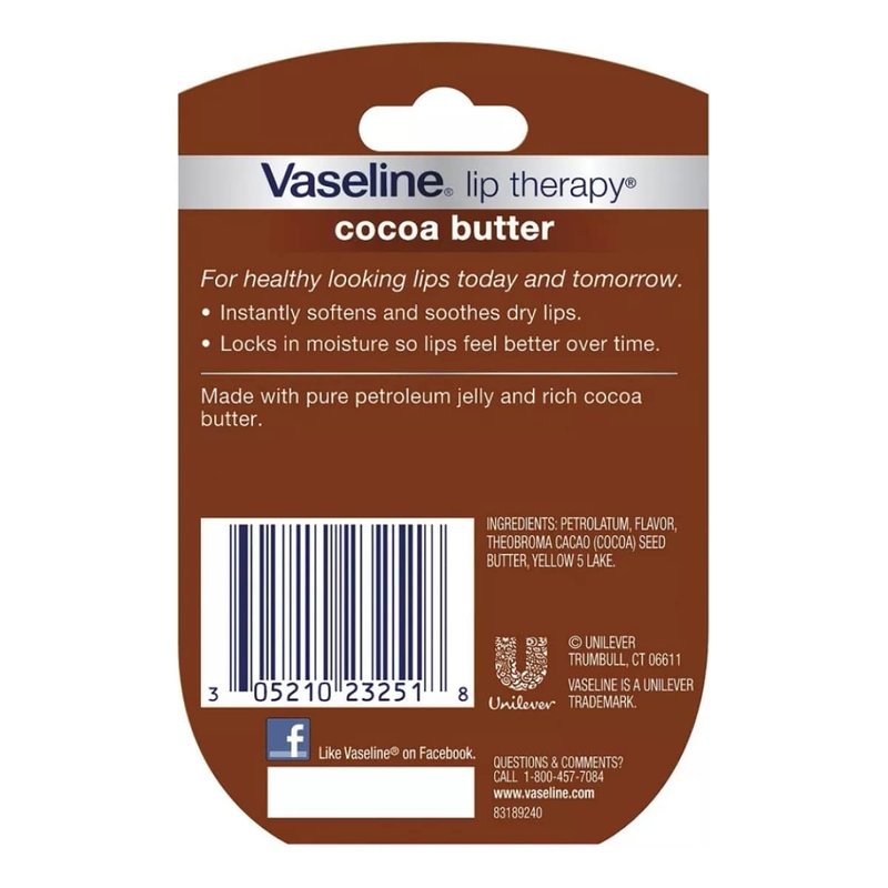 Made with Vaseline Jelly, Vaseline Lip Therapy Cocoa Butter heals and prevents dry lips by locking in moisture for long-lasting hydration. It revives dullness, leaving lips soft, smooth, and healthy with a non-sticky, cocoa butter-scented formula.