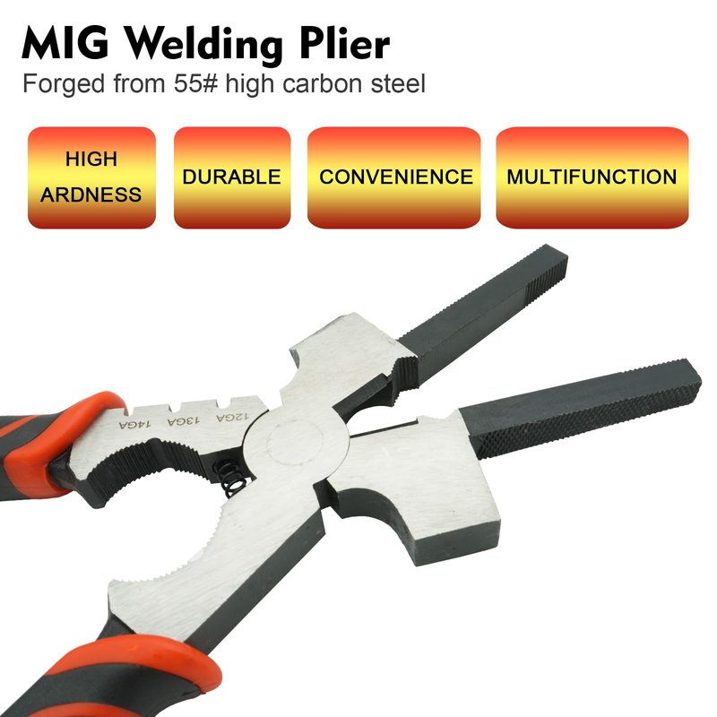 - Multi-Purpose MIG Pliers : clean nozzle, draw and cut wire, remove and install tips, nozzles and insulation bushings - even use them as a hammer.