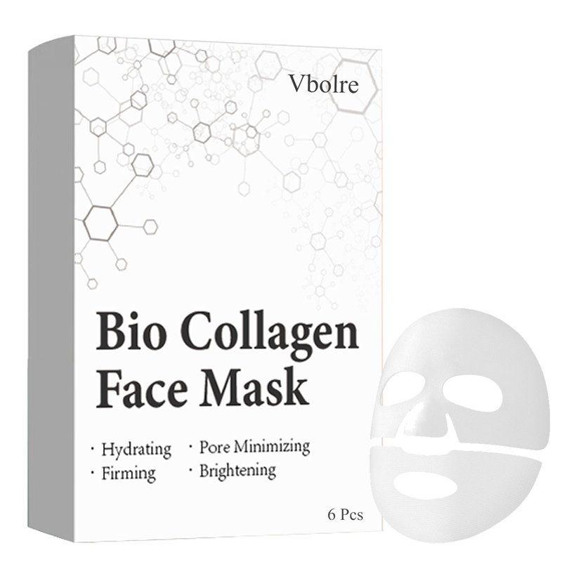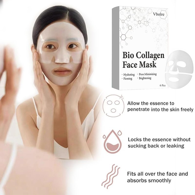 Vbolre Bio Collagen Face Mask 6 Sheets, Bio-Collagen Deep Mask Overnight, Korean Face Mask Skincare, Pure Collagen Facial Sheet Masks Glow Hydrating Anti Wrinkle Lifting Mask