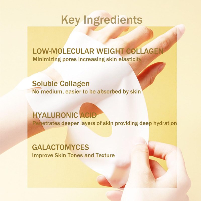 - 【Long-lasting Moisturization】Bio-Collagen Mask makes dull and wrinkled skin bright and elastic by keeping the skin hydrated and smooth for a long time.