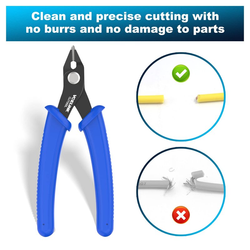 VCELINK Small Wire Cutter Spring-loaded GJ706BL, Precision Flush Cutter Pliers Diagonal Cutters for Electronics, Jewelry Making, Model Craft and 3D Printer, 5-Inch
